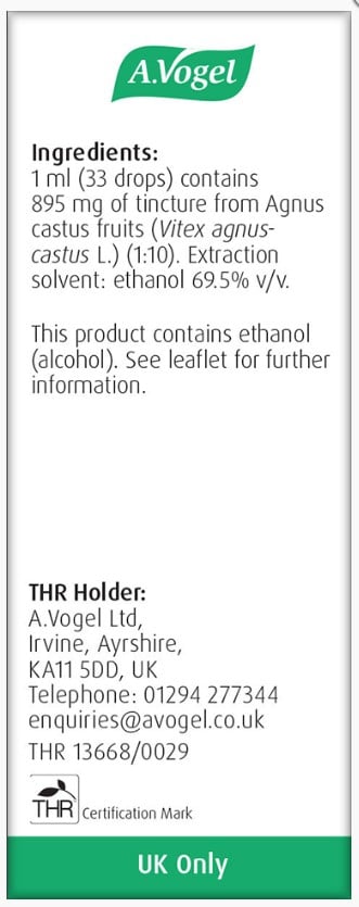 A.Vogel Agnus castus is a licensed herbal remedy which can be used to help relieve symptoms of PMS (premenstrual syndrome) such as menstrual cramps, breast tenderness, bloating, irritability and mood swings.