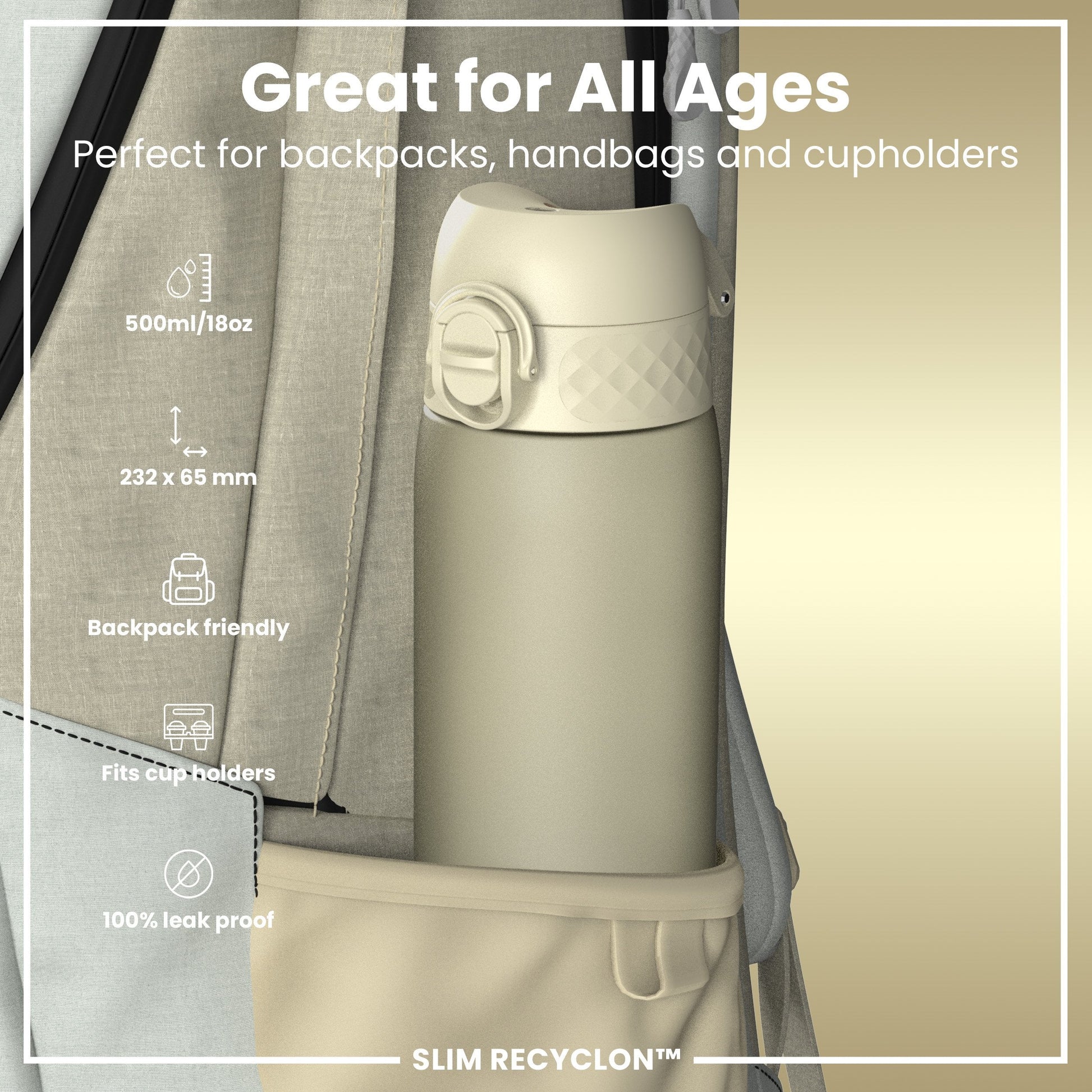 Leak Proof Slim Water Bottle, Recyclon, Creamy White, 500ml (18oz)