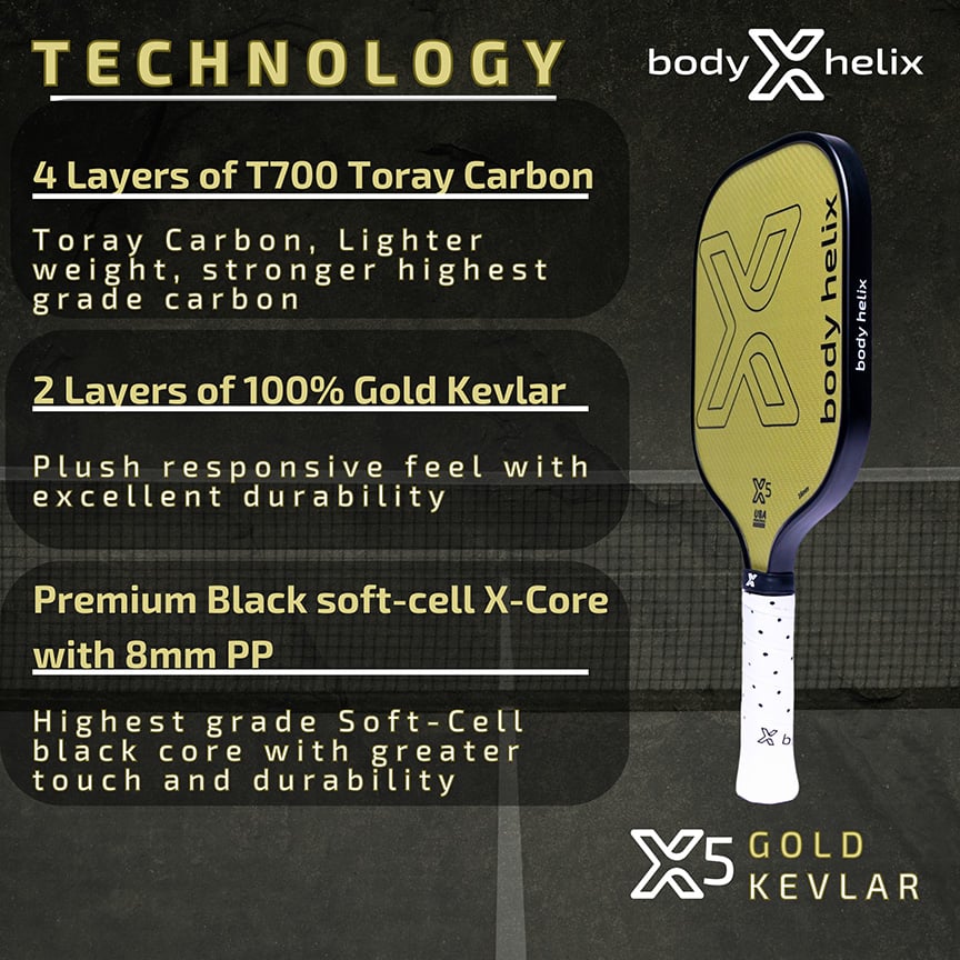 The X5 Gold Kevlar is designed for players who crave speed, power, and control in every swing!