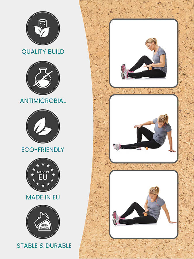 - Use our cork ball for comfortable self-massage at home or in the office.