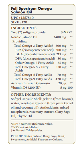 A premium blend of Nordic salmon oil, providing the full spectrum™ of omega fatty acids plus vitamin D3 and astaxanthin.